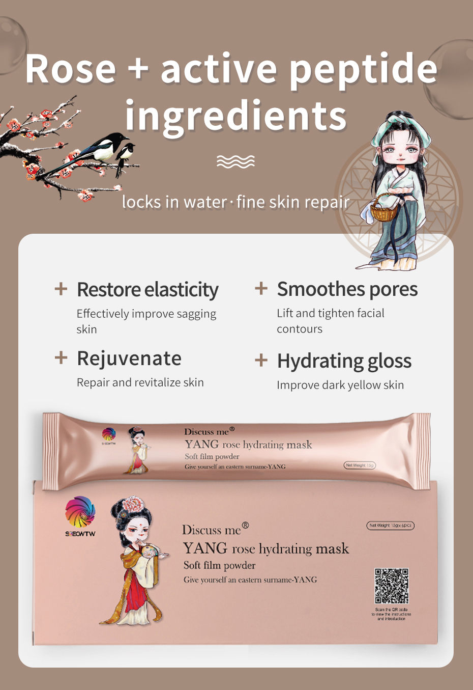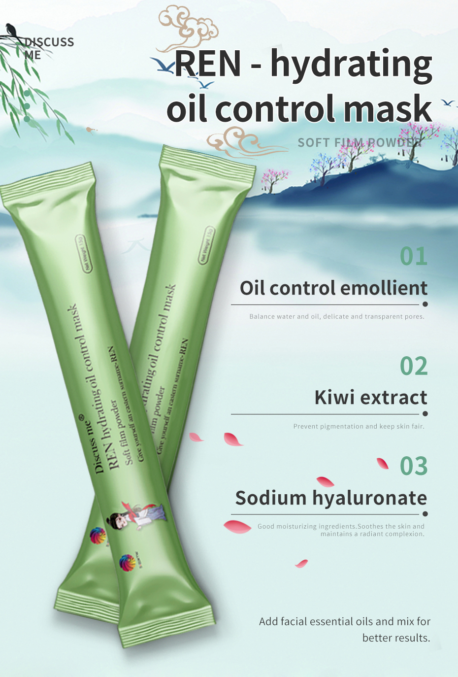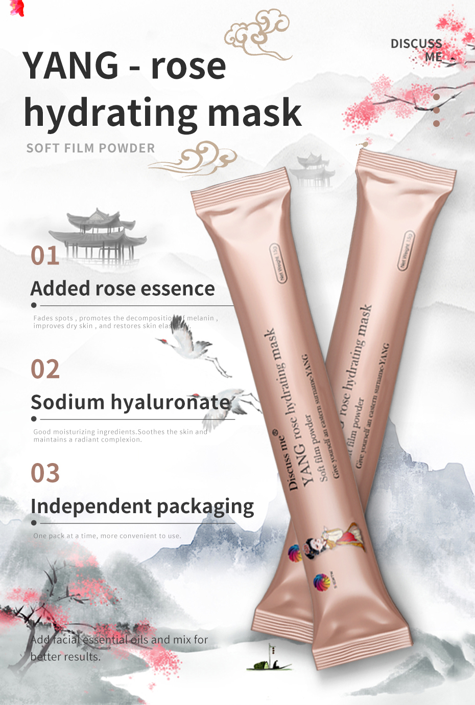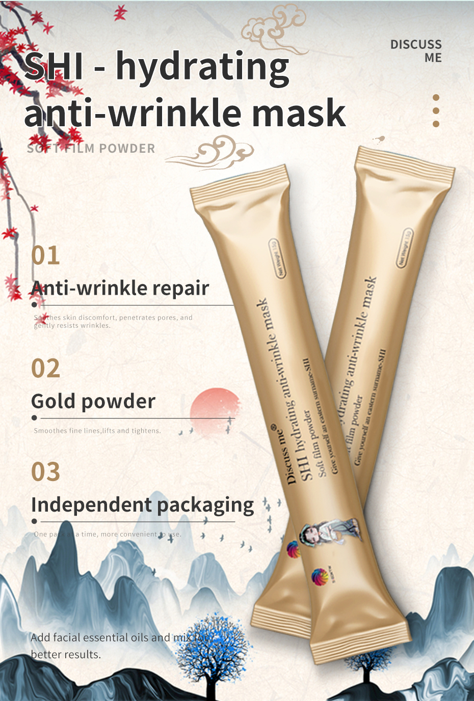 Discuss me Four-color Ancient Style Soft Film Powder - A multi-color application facial mask, each box contains 15g x 6 pieces, suitable for both face and body.