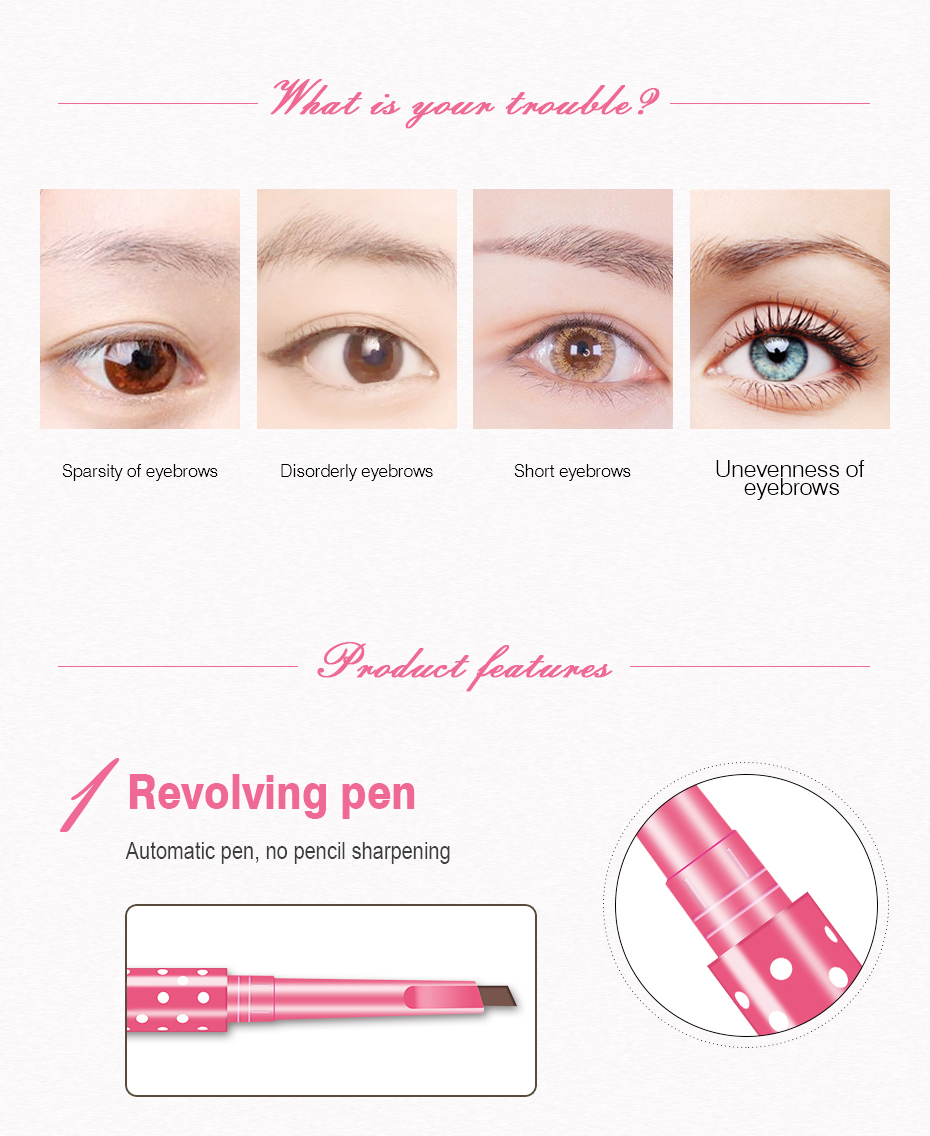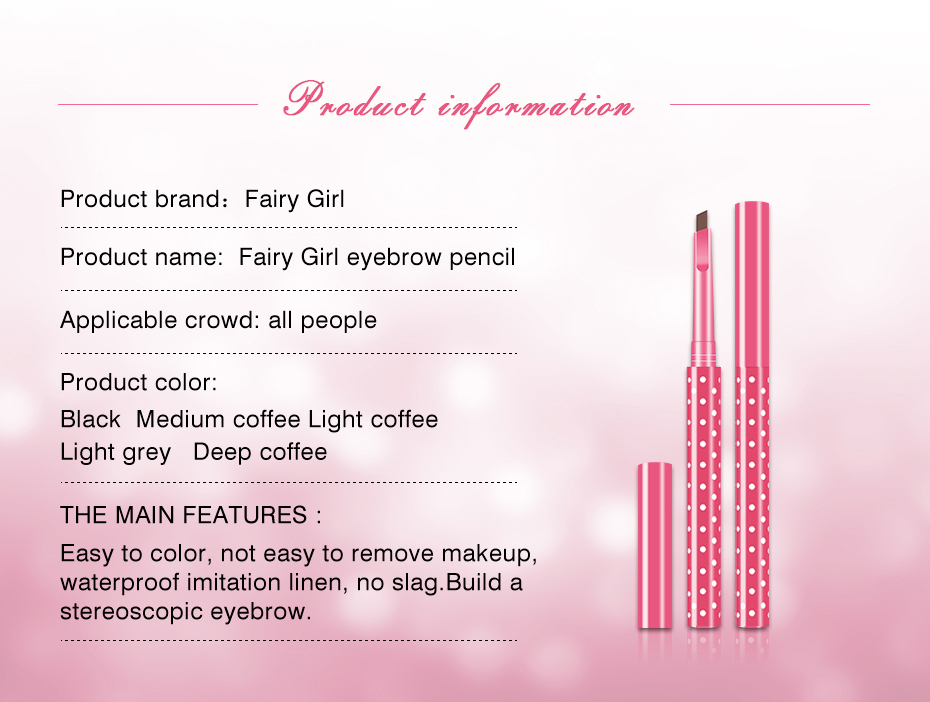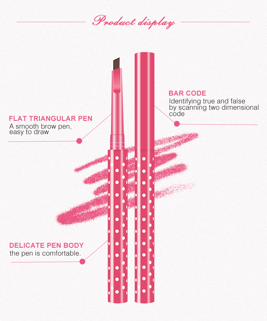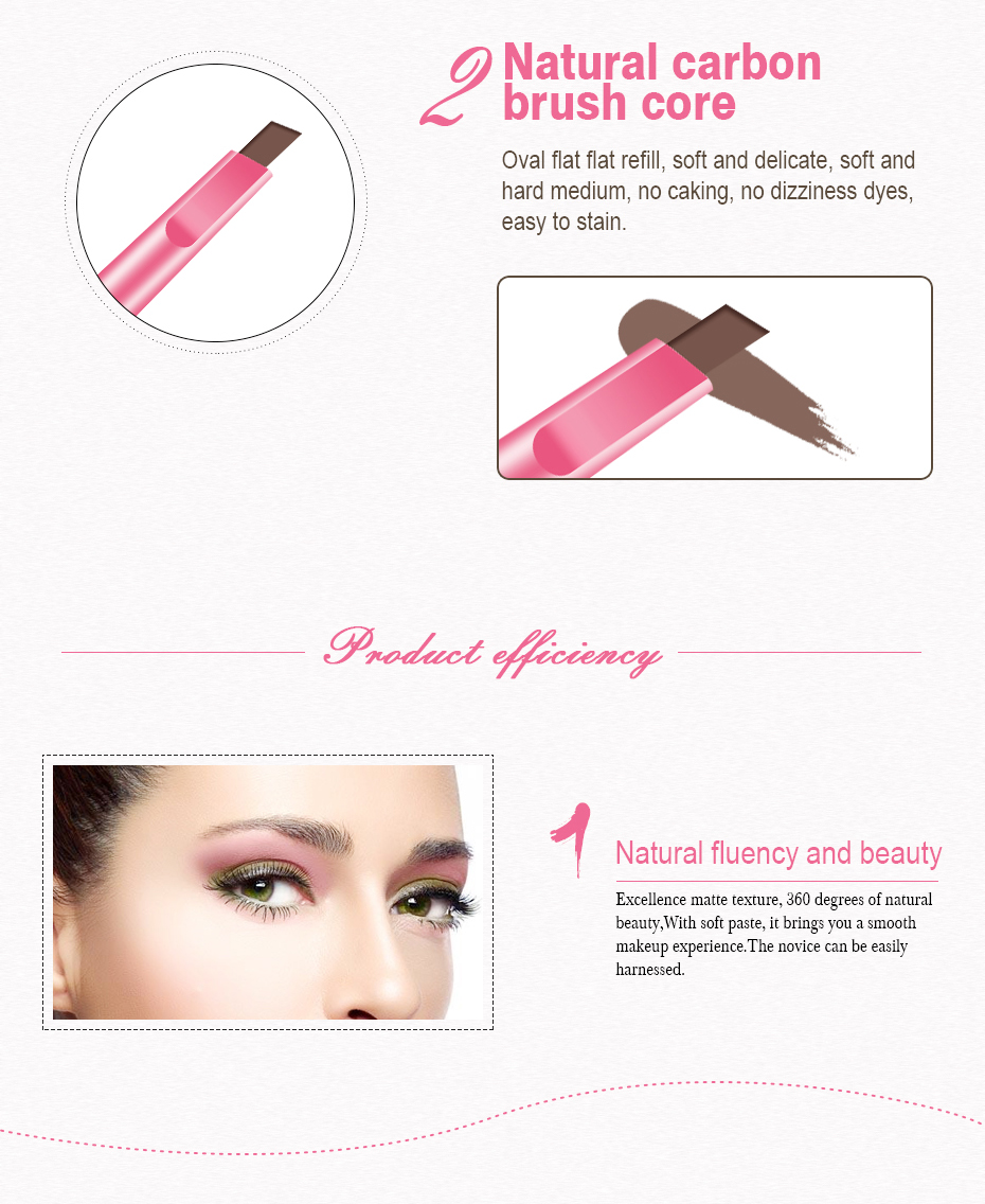 Eyebrow pencil is water-resistant, sweat-proof, long-lasting and not prone to smudging. It is suitable for beginners. The color of the cosmetic is three-dimensional.