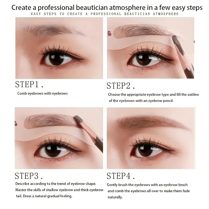 The eyebrow card set precisely positions the eyebrow template and is closely connected to the one-step eyebrow template set. It is a professional and portable eyebrow shaping template.
