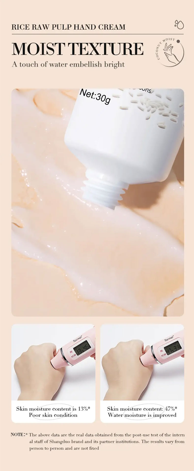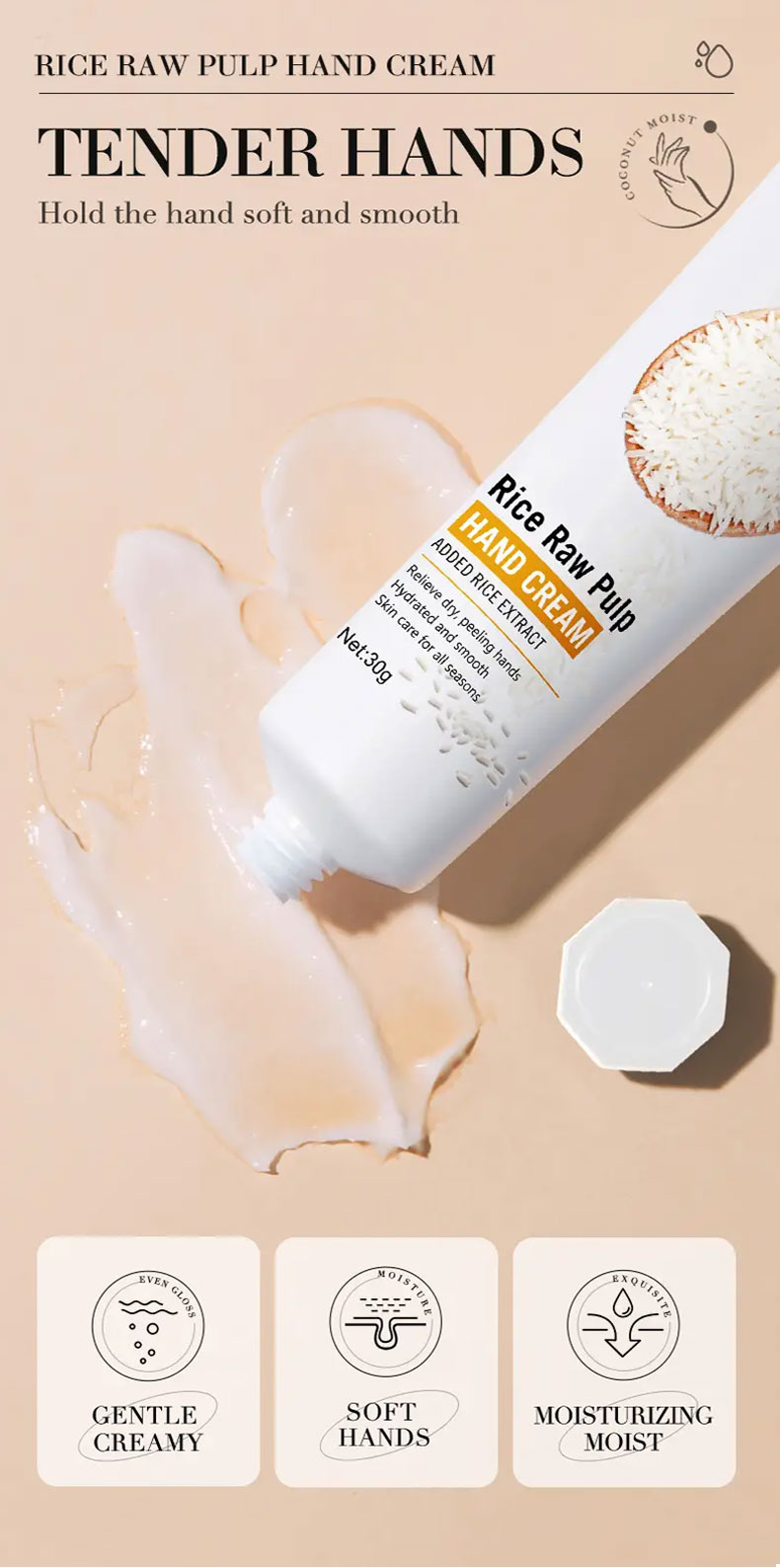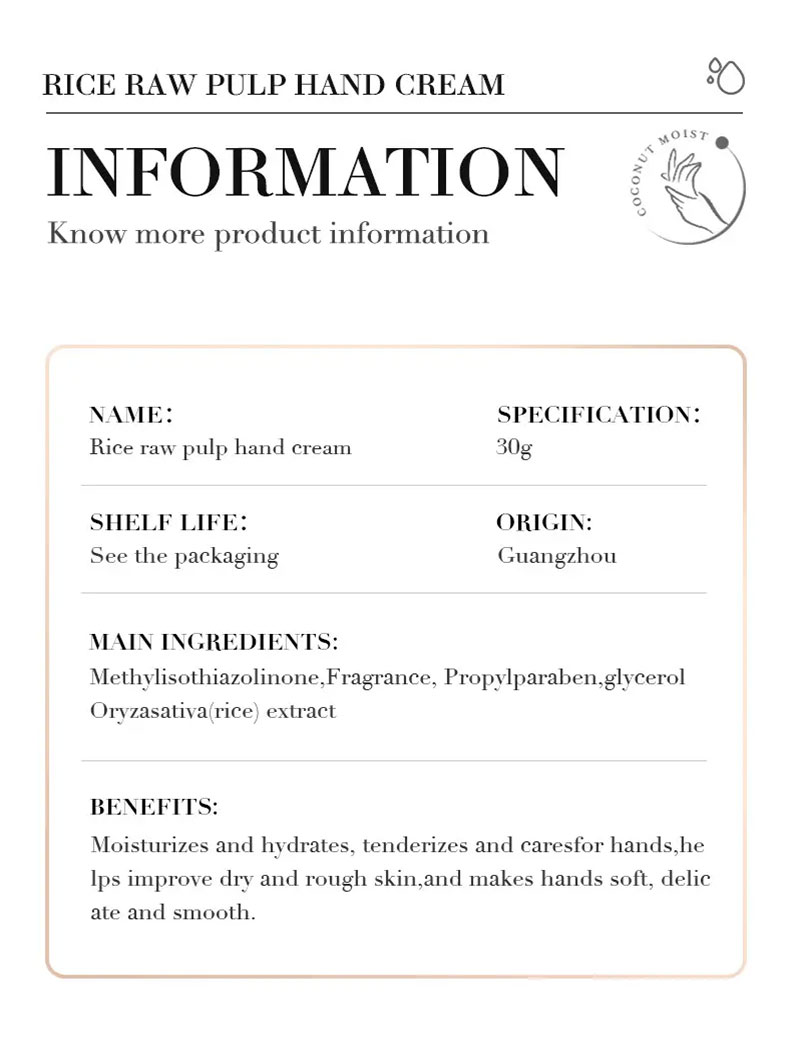 BIOAQUA Rice Raw Pulp Hand Cream Moisturizing Brighten Anti-cracking 30g
