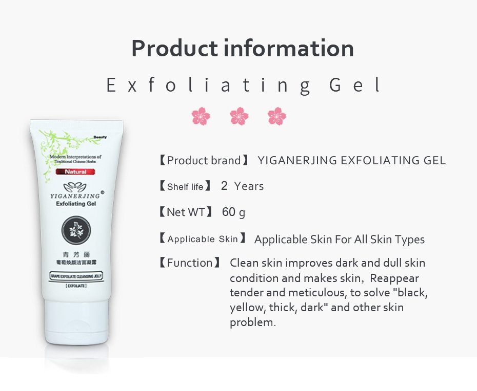 YIGANERJING Moisturizing Exfoliating Gel Cleanser - a 60g gentle formula that removes dead skin cells, revealing smoother, revitalized skin. With a refreshing fresh grass fragrance, it also provides moisturizing benefits for a radiant complexion.