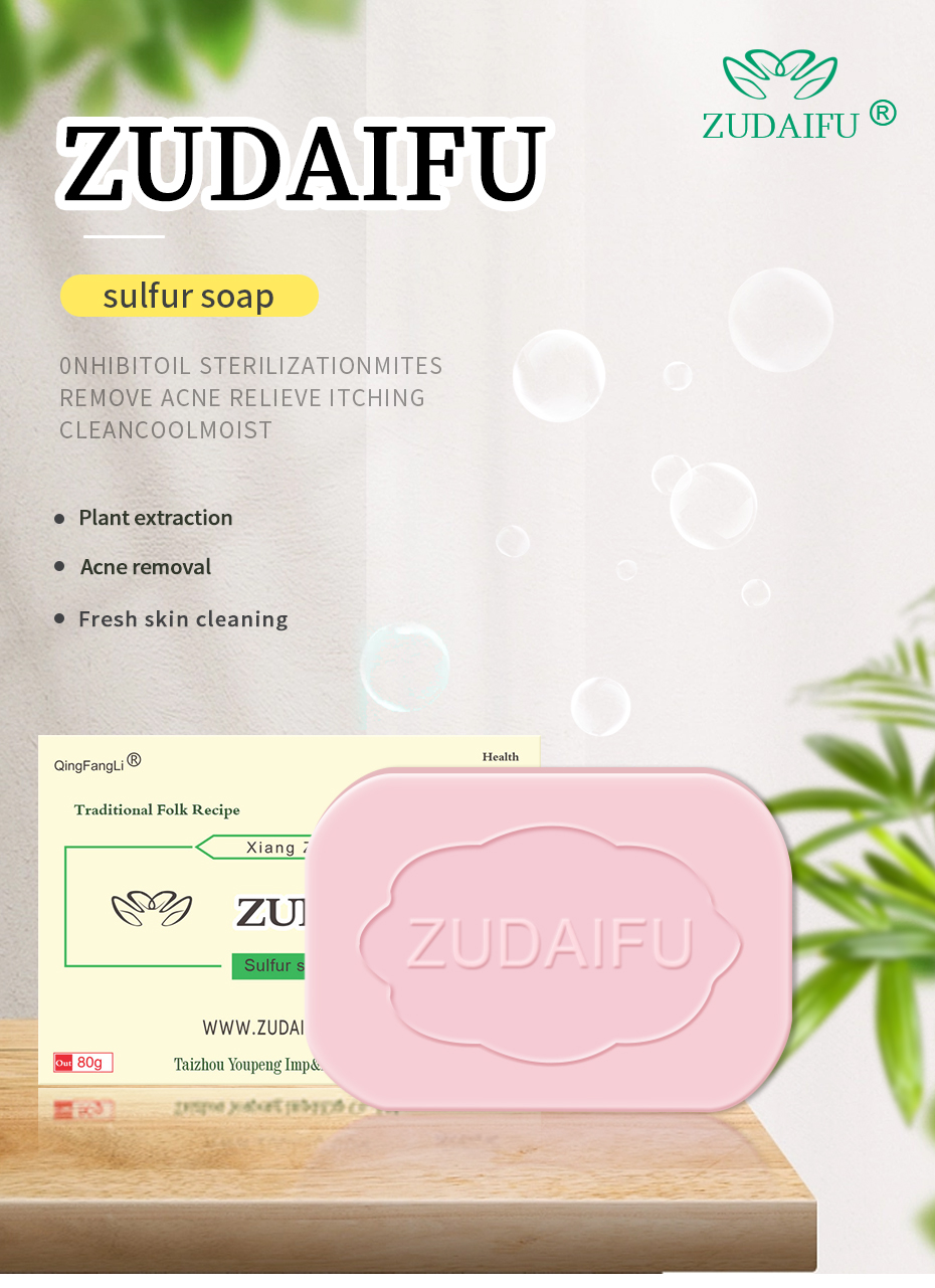 Wide applicability: Due to its antibacterial, anti-inflammatory, acne and blemish-fighting, moisturizing, and deodorizing properties, Zudaifu sulfur soap has a wide range of applications. It can not only be used as a daily facial cleanser, but also as an auxiliary treatment product for skin diseases such as acne and eczema.