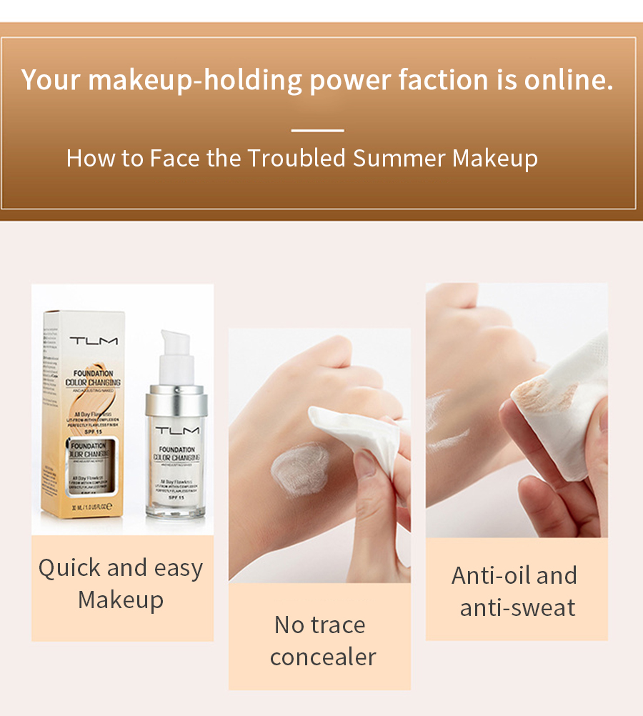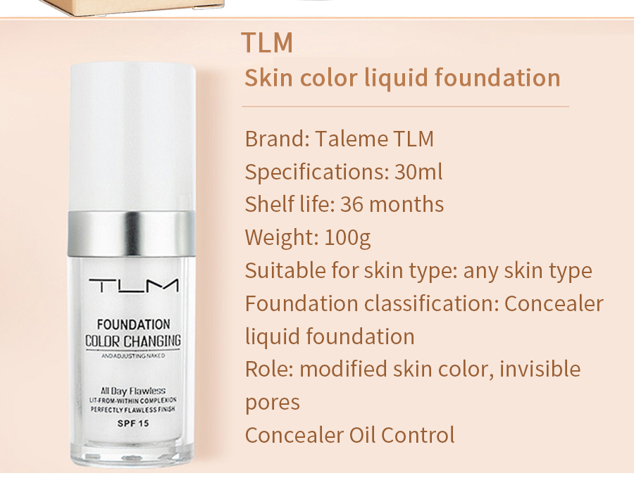 "TaleMei TLM Color Changing Foundation" is a revolutionary product that simplifies the process of finding the perfect foundation shade. The foundation comes out of the bottle as a white cream, but as you apply it to your skin, it adapts and changes color to match your unique skin tone. This innovative technology ensures a seamless and natural finish, eliminating the need for multiple shades of foundation to find the right match. The foundation offers buildable coverage, allowing you to achieve your desired level of coverage from sheer to full, depending on your preference. It effectively conceals blemishes, redness, and uneven skin tone, providing a smooth canvas for the rest of your makeup. Moreover, the TaleMei TLM Color Changing Foundation is enriched with skincare ingredients that nourish and moisturize the skin, promoting a healthy and radiant complexion. It is formulated to be long-lasting and transfer-resistant, ensuring your makeup stays flawless throughout the day. Suitable for all skin types, including sensitive skin, this foundation is oil-free, paraben-free, and non-comedogenic. Whether you have fair, medium, or deep skin tone, TaleMei TLM Color Changing Foundation adapts to create a custom match for a beautiful and natural look. Experience the magic of color-changing technology with TaleMei TLM Color Changing Foundation and achieve a flawless complexion effortlessly! |