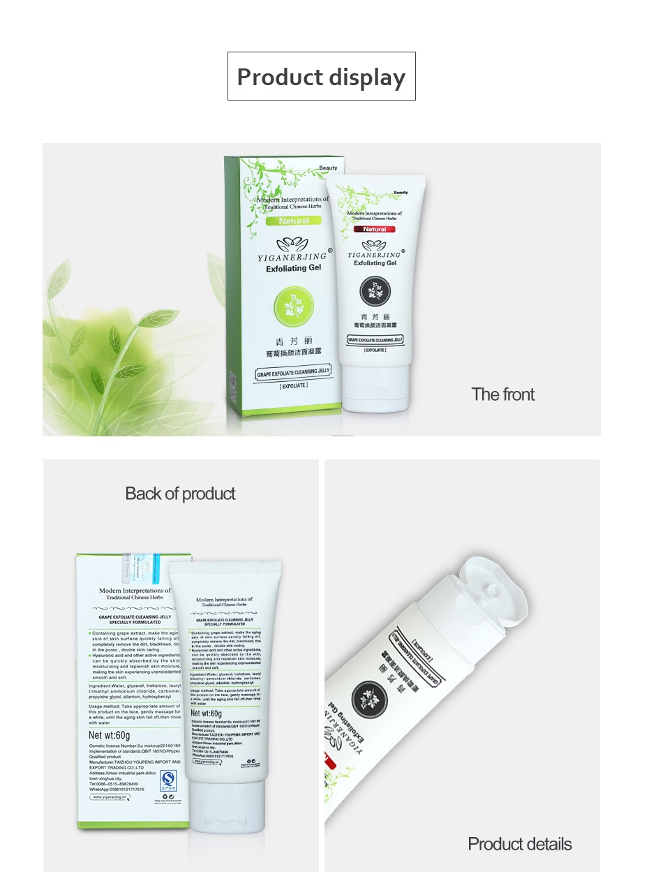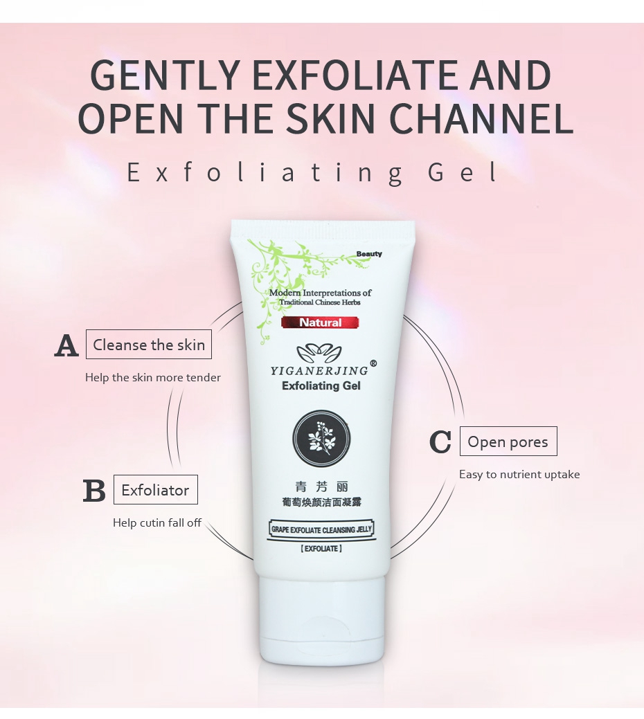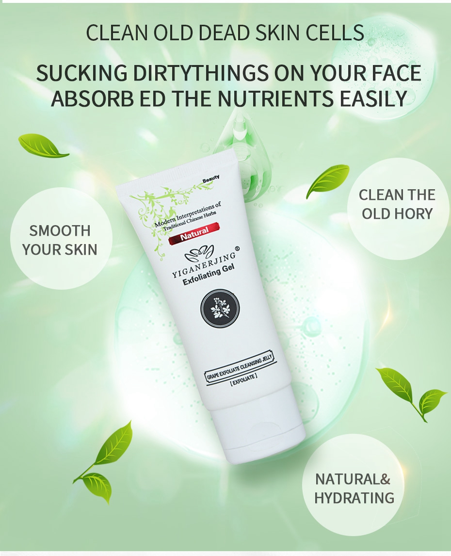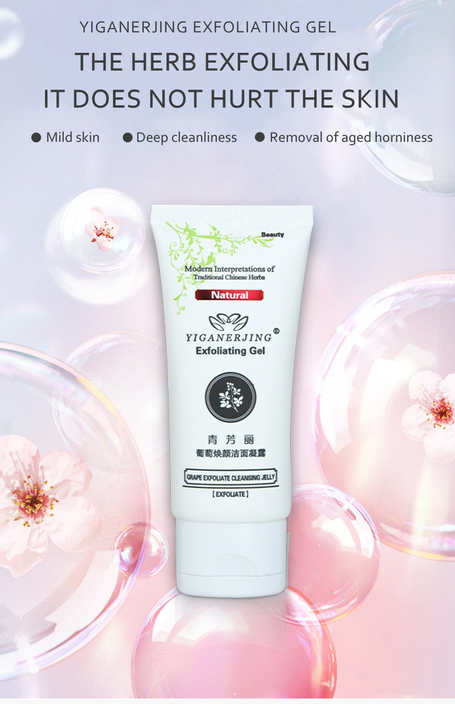 YIGANERJING Moisturizing Exfoliating Gel Cleanser - a 60g gentle formula that removes dead skin cells, revealing smoother, revitalized skin. With a refreshing fresh grass fragrance, it also provides moisturizing benefits for a radiant complexion.