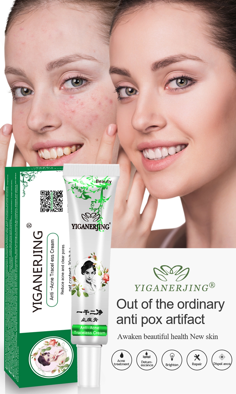 Powerful Acne Treatment: YIGANERJING cream employs a potent formula that effectively combats acne. It rapidly reduces the number and size of acne breakouts and accelerates the healing process.