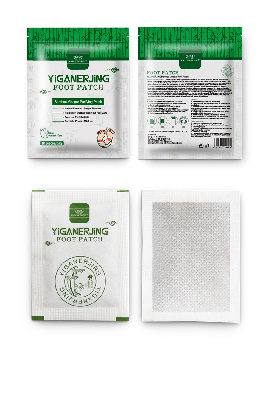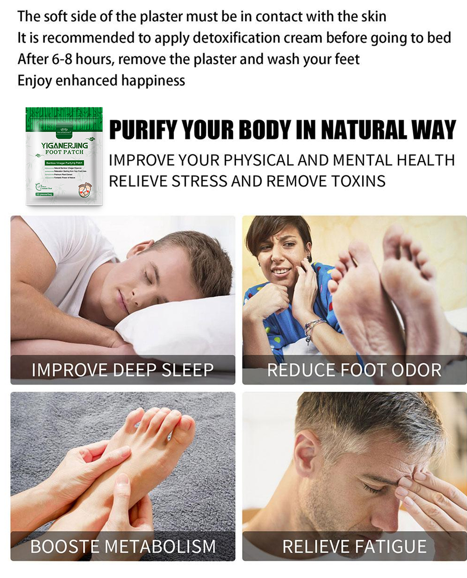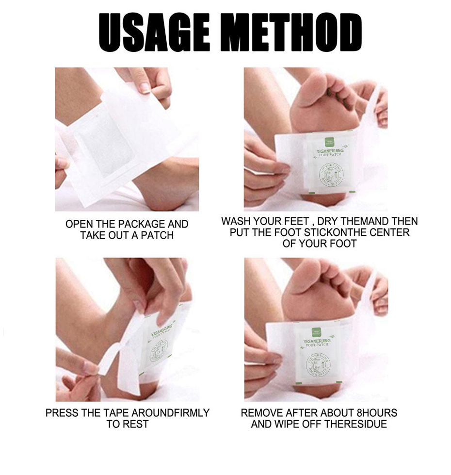 YIGANERJING foot patches are a natural therapy that uses traditional Chinese herbal formula to soothe fatigue, improve sleep, and promote blood circulation when applied to the feet. Each pack contains 10 patches, and it's recommended to use continuously